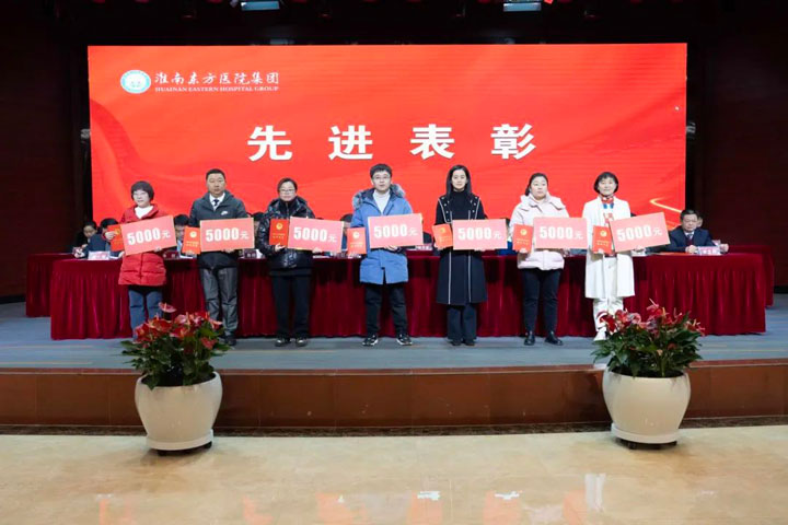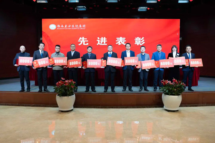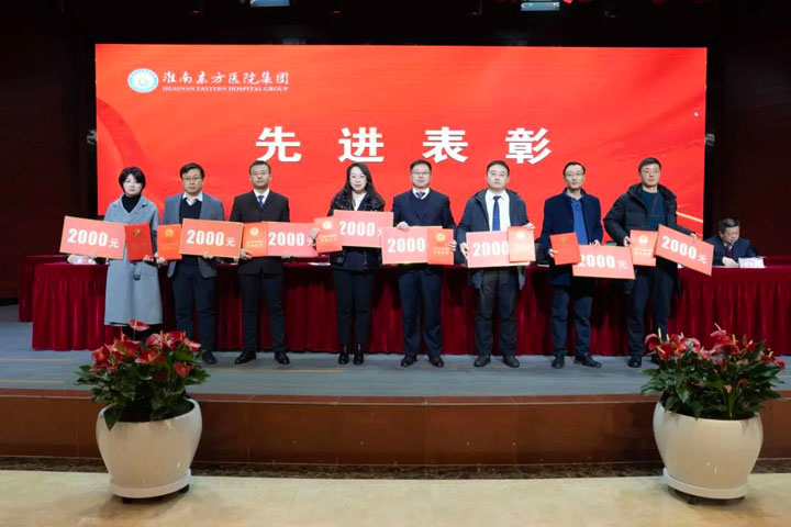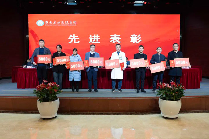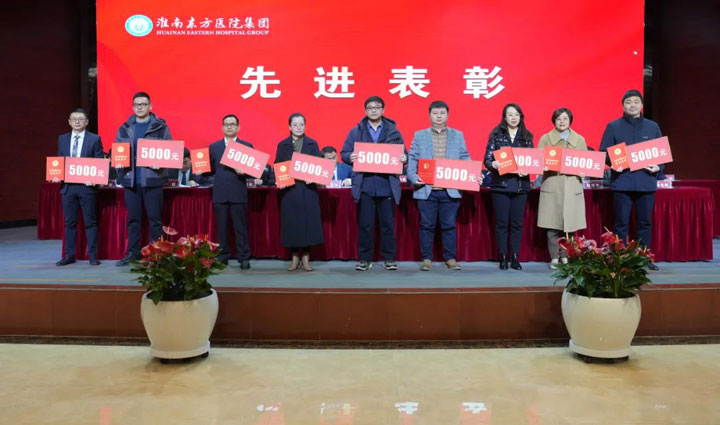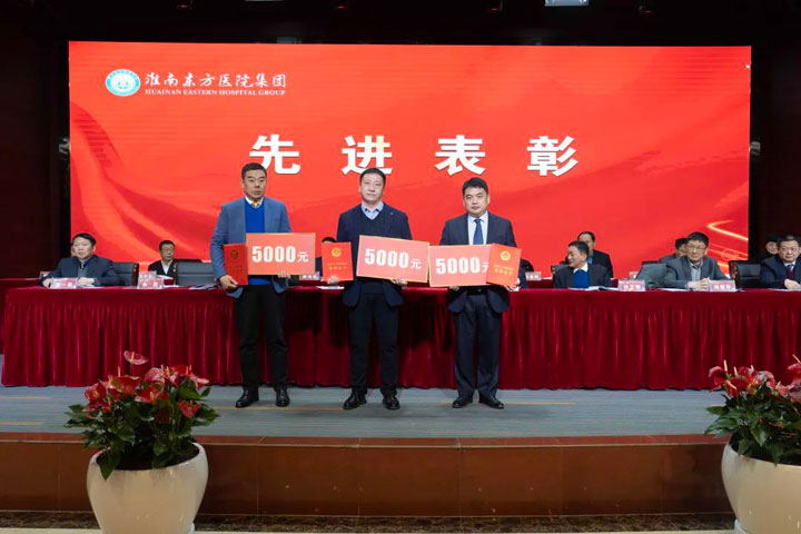 宣读结束,大会举行了隆重的颁奖仪式。医院集团党委书记江鸿方、董事长江永强等集团领导分别为医院高质量发展奖、医疗中心高质量发展奖、管理创新奖、科室高质量发展奖、规范医疗奖、卓越奉献奖、东方名医、东方工匠、技术突破标兵、管理创新标兵、科研创新标兵、教学园丁奖、美丽天使奖、青年励志奖等186个先进集体和先进个人颁发了荣誉证书和奖励。