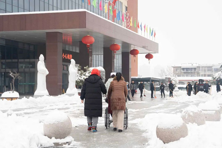 行动是最好的“融雪剂”,大家不惧严寒,纷纷撸起袖子,拿起铁锨、扫帚干劲十足,齐心协力,忙碌的身影在雪地里勾勒出靓丽的“雪景画”,满腔的热情,化了冰雪、暖了人心。为提升除雪效率,医院还调来两辆铲车协助作业,针对人流量最大的门诊广场进行除雪,经过近3小时的辛勤劳动,医院各重要场所和关键路段的冰雪被清除干净。