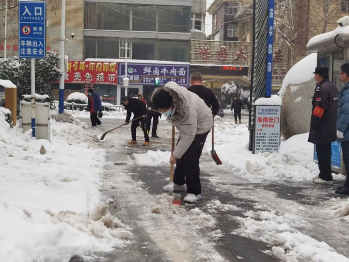 近日,淮南地区连续多日出现暴雪,为保障患者平安出行,广济医院领导班子提前返岗,连续多日带领医院后勤机关科室、临床医技部分人员,在院区内外进行除冰铲雪作业。刺骨的寒风抵挡不住东方人团结一致的身影,在热火朝天的东方人面前,一条条道路被清理出来。