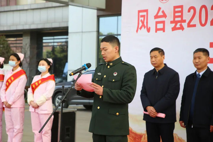 仪式由县退役军人事务局刘志伟主任主持,凤台县副县长廖欣进行了活动致词,退役军人代表进行发言。凤凰医院党委书记安新向各位领导来宾以及退役军人们致以热烈欢迎并表示:军民鱼水情,拥军优属是我们党和人民在长期发展建设中形成的优良传统和政治优势。凤凰医院作为凤台县首个拥军医院,为此次体检进行了细致筹备,一定能不辱使命,圆满完成此次退役军人免费体检工作。