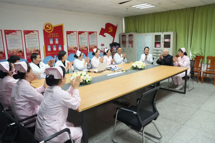 “冯立林老人在住院期间成立临时党小组,帮助其他病人的事迹早就在医护人员里传开了。像冯老这样不忘初心的老党员,是我们身边最生动的活教材,是我们可知、可学的对象。”内科支部组织的这次学习活动,得到了很多医护人员的支持,大家纷纷放弃夜班后的休息时间,和冯老一起走进党员活动室,听他讲述革命传统和优良作风,以及守初心、担使命的感人故事。