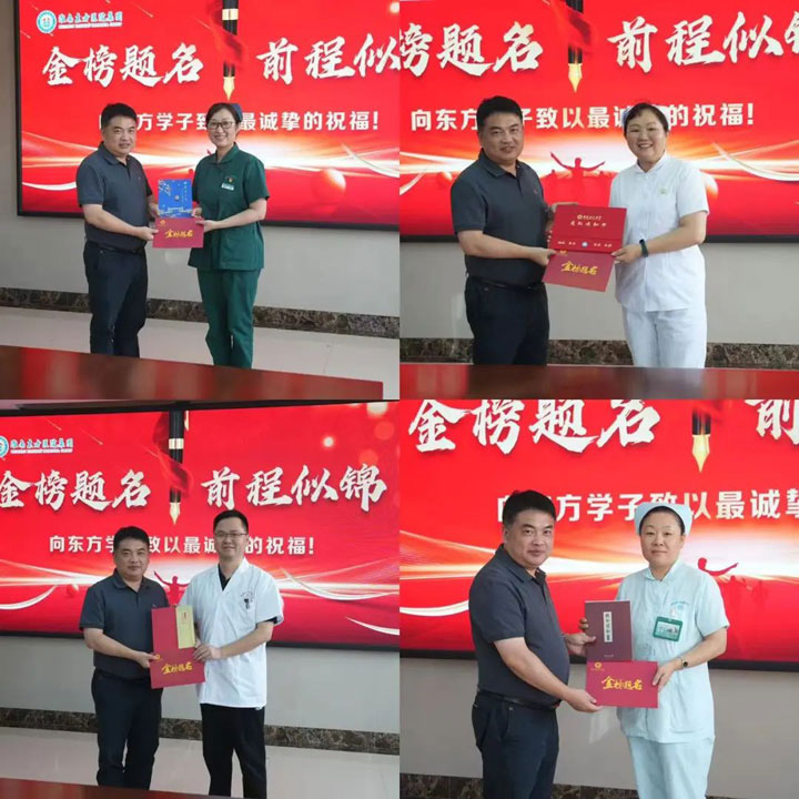 今年获得奖励的高考优秀东方学子分别被暨南大学、安徽理工大学、东南大学、安徽大学、皖南医学院等高等院校录取。还有不少东方子女报考了医学院校,这也体现了医院职工、学子对医学事业的热爱,陆书记表示希望孩子们可以早日学成归来,加入东方大家庭。随后东方总院朱胜副院长为家长代表颁发奖学金,此次高考奖学金共为40名学子发放奖学金,每人1000元,共计4万元。