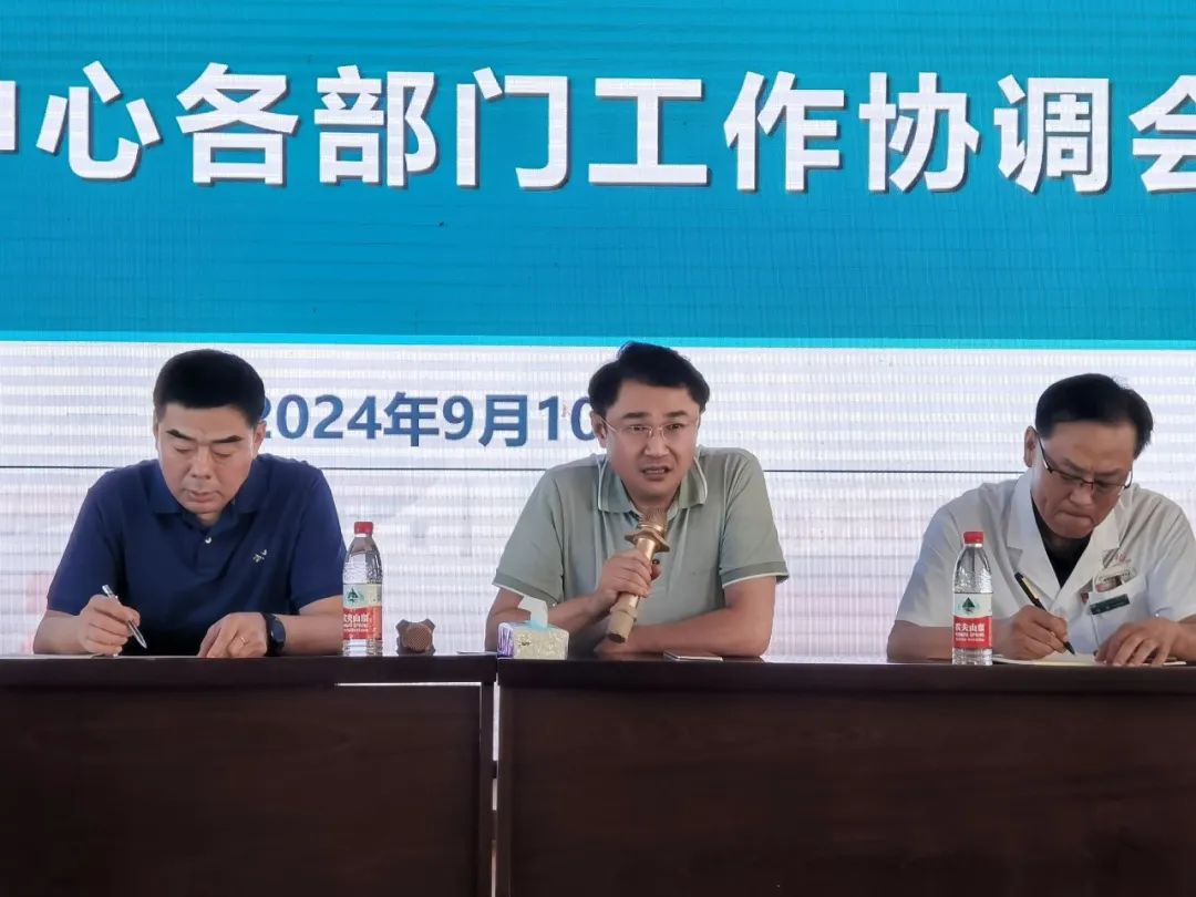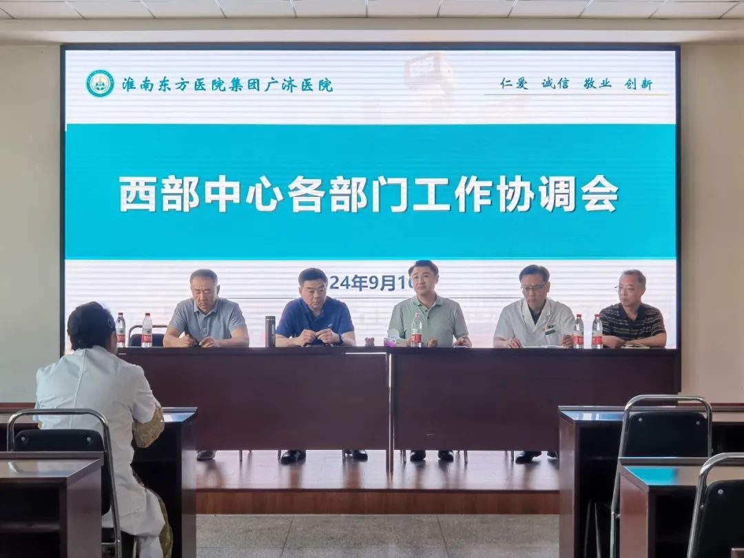 9月10日下午,医院集团董事长江永强一行拨冗来到广济医院,在三楼会议室召开西部中心各部门工作协调会,广济医院、新庄孜医院领导班子,广济医院、新庄孜医院及李郢孜医院各科室主任,各社区卫生服务中心负责人等参加会议。广济医院院长余涛主持会议。