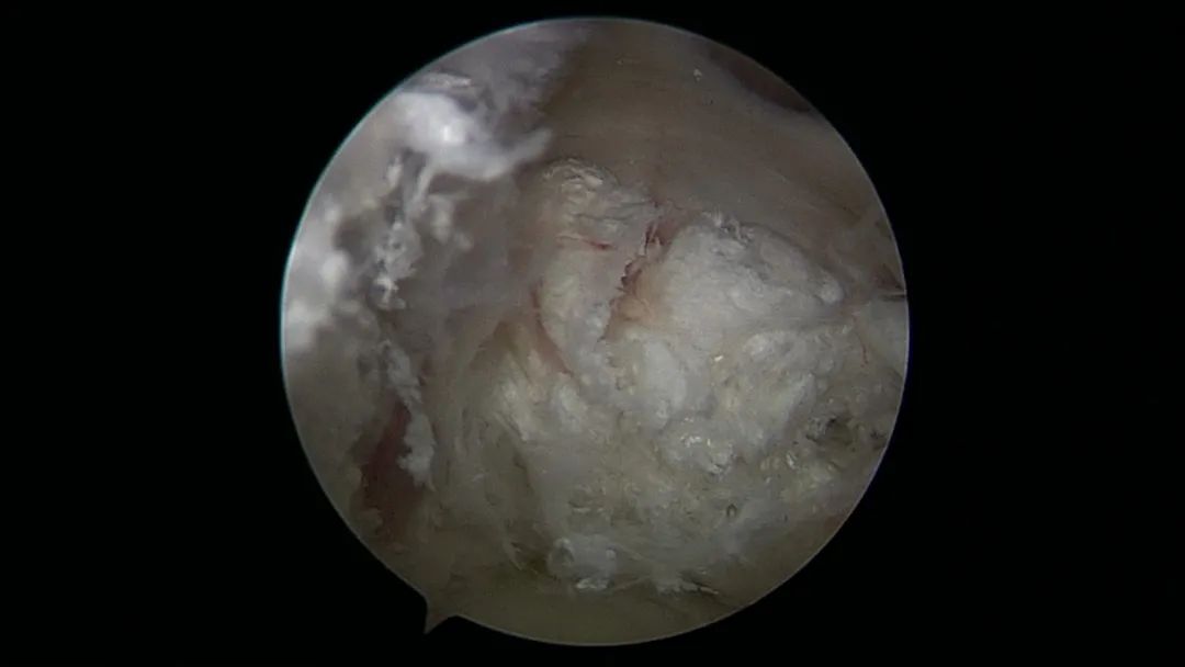 ▲关节镜下可见大量痛风结晶沉积