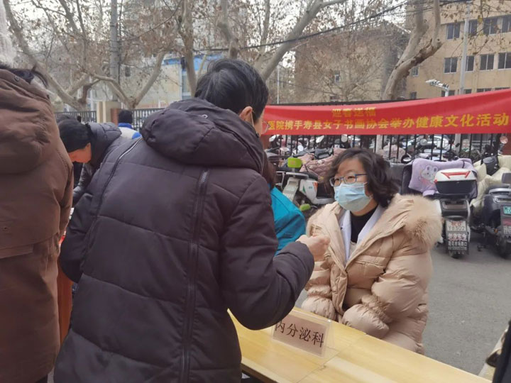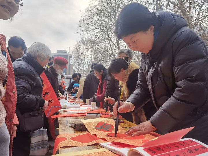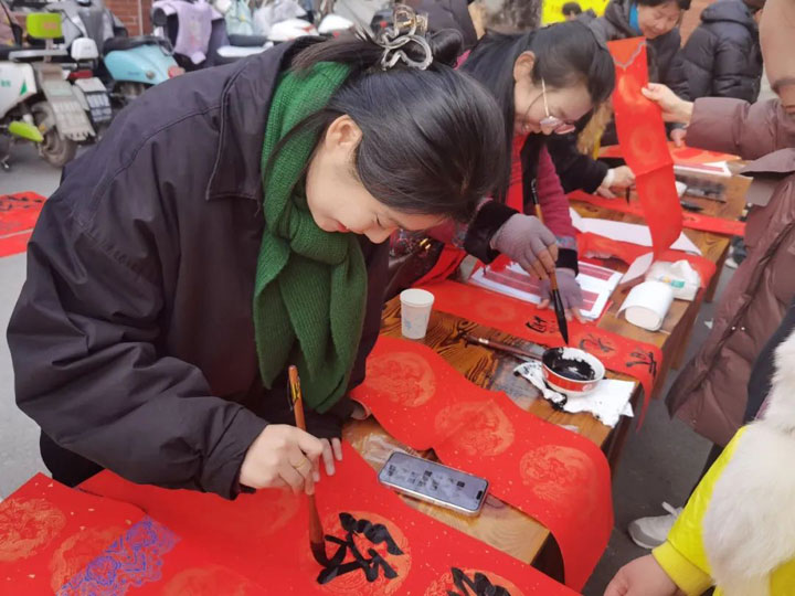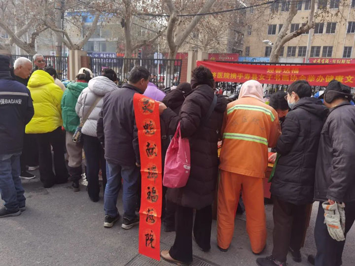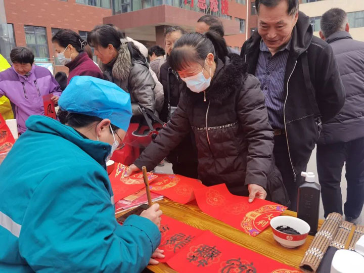 年来喽!”1月20日上午,广济医院院内春意盎然,年味十足。来自寿县女子书画协会的多位女书法家和医院医护人员共聚广济,为居民和患者朋友书写春联、健康宣教,为即将到来的新年送上问候和祝福。
