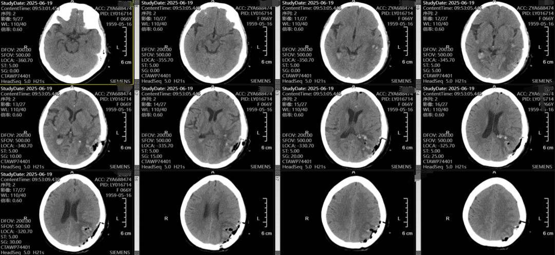 随着老龄化的加剧,脑出血的患者越来越多,不同部位的脑出血,可能因不同的原因导致,该患者左侧颞枕叶脑出血,吴全主任考虑脑血管畸形可能较高,但患者意识渐昏迷,先行血肿清除,但骨窗主要位于后枕顶部,若是去除骨瓣,不利于术后脑组织的保护,且后期需要颅骨修补,故与患者家属充分沟通后,予以骨瓣回纳,术后治疗上加强脱水,帮助患者渡过脑水肿关,患者术后第一天意识即转清楚。后期待病情平稳后在行DSA检查评估,明确此次出血是否为脑血管畸形、动脉瘤等原因导致的出血。