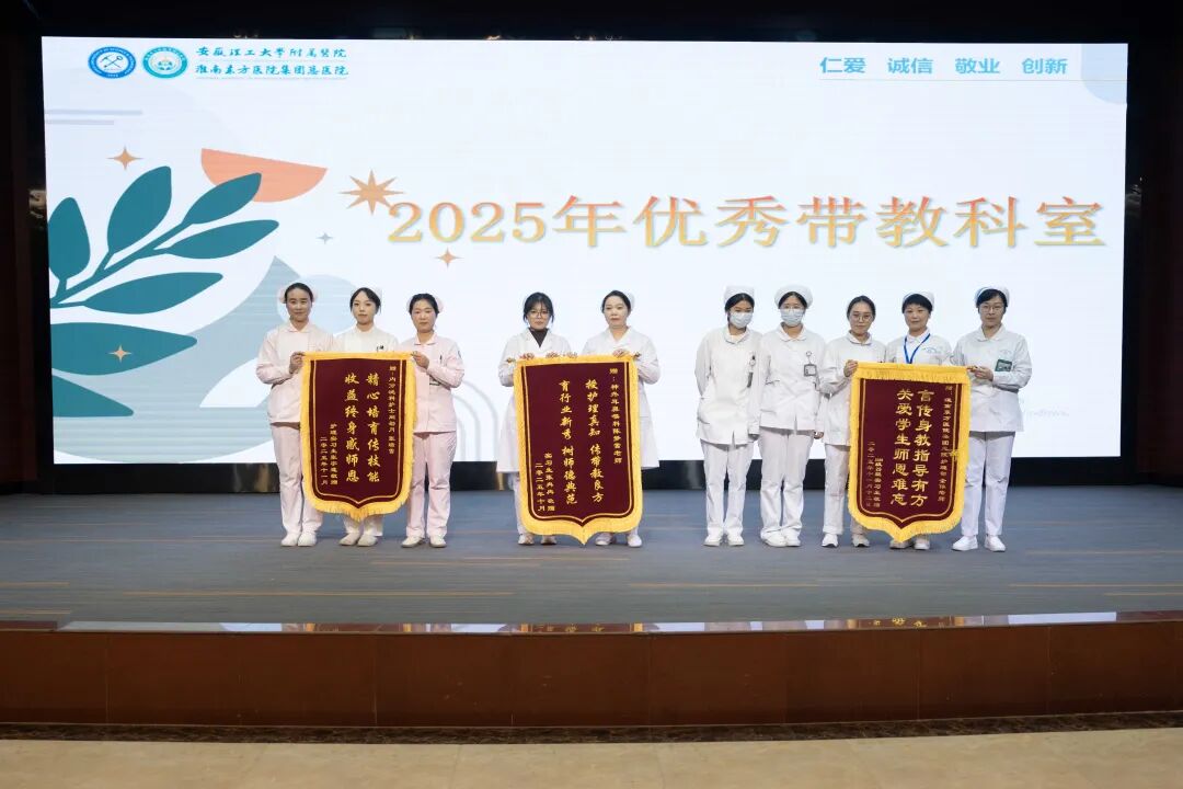 典礼现场表彰了一批先进集体与个人。重症医学科、神外五官科等六个科室获评“优秀带教科室”;阚劲月、刘梦琦等七位老师荣获“我最喜爱的护理带教老师”;来自淮南卫校、联大、安医大临床学院等多所院校的二十余名实习生获得“优秀实习生”称号。朱婷婷同时获评“优秀实习队长”。