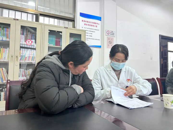 解读过程中,医护人员结合每位体检人员的报告数据,用通俗易懂的语言,详细讲解各项检查指标的含义、异常指标可能带来的健康风险,耐心解答大家提出的疑问。同时,根据体检结果,为群众提供个性化的健康建议,引导大家养成科学的饮食、作息习惯,树立正确的健康观念。专业的讲解不仅解开了群众心中的健康困惑,更拉近了医院与群众之间的距离。为搭建长效健康服务桥梁,参与服务的医护人员还与朱岗村、淮滨村的村医互加联系方式,建立常态化交流平台,便于后续及时沟通群众健康情况、共享健康信息,形成“医院+村医”联动守护模式,让健康服务持续延伸至群众身边。