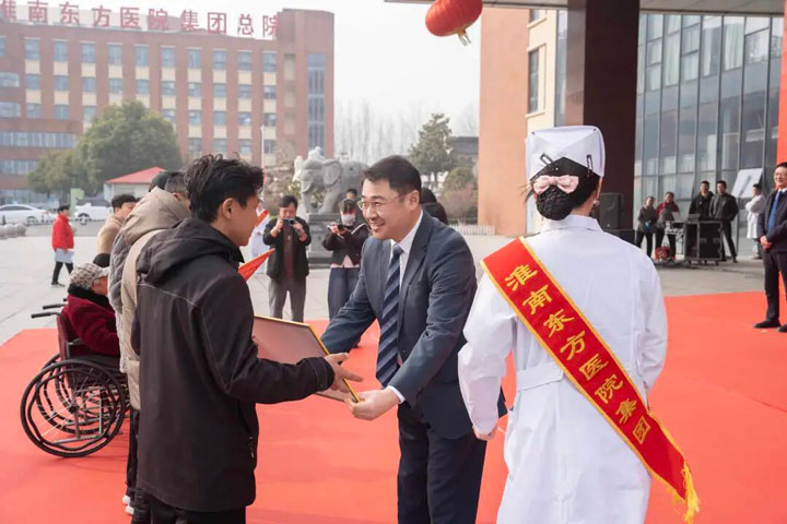 春回大地,紫气东来。3月20日,农历二月初二“龙抬头”,在这个寓意昂扬向上、万象更新的美好日子里,淮南东方医院集团在总院门诊广场隆重举行“强化基层,融合发展年”启动仪式暨特困患者救助基金发放仪式。淮南东方医院集团董事长江永强携集团领导班子成员出席仪式,各医院领导班子、员工代表齐聚一堂,共同见证这一重要时刻。