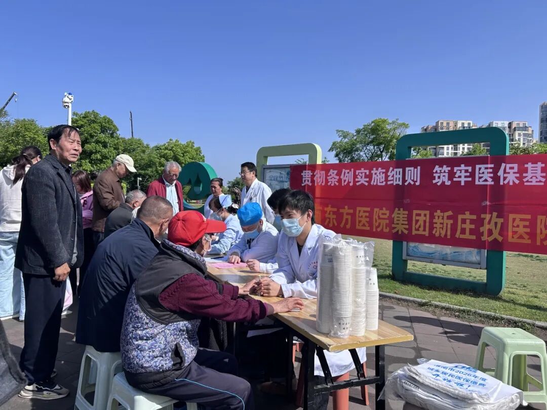 活动现场,新庄孜医院组织专业医护人员搭建服务台,为过往群众提供免费血压测量、血糖检测等便民健康服务,医护人员耐心细致地为群众解读检测结果,讲解高血压、糖尿病等常见慢性病的预防、护理知识,引导群众树立科学健康的生活理念。